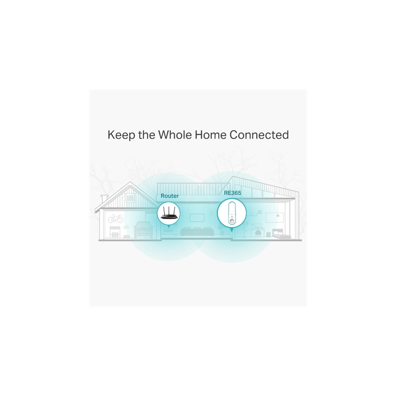 TP-LINK | Extender | RE365 | 802.11ac | 2.4GHz/5GHz | 300+867 Mbit/s | 10/100 Mbit/s | Ethernet LAN (RJ-45) ports 1 | MU-MiMO No | no PoE | Antenna type 2xExternal