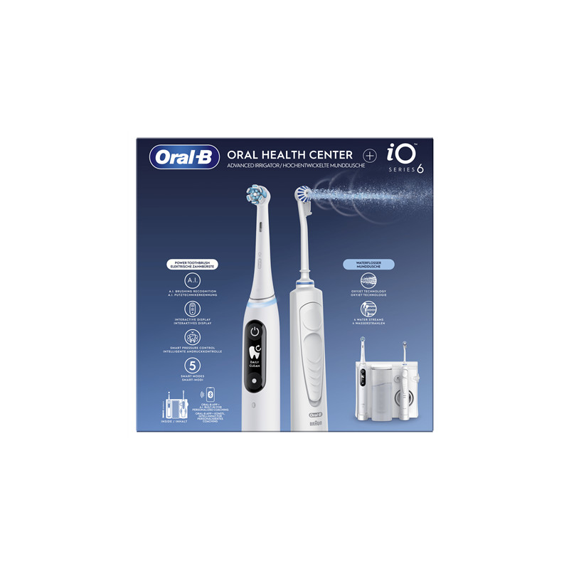 Oral-B Electric Toothbrush | iO6 & OxyJet | Rechargeable | For adults | Number of brush heads included 2 | Number of teeth brushing modes 5 | White