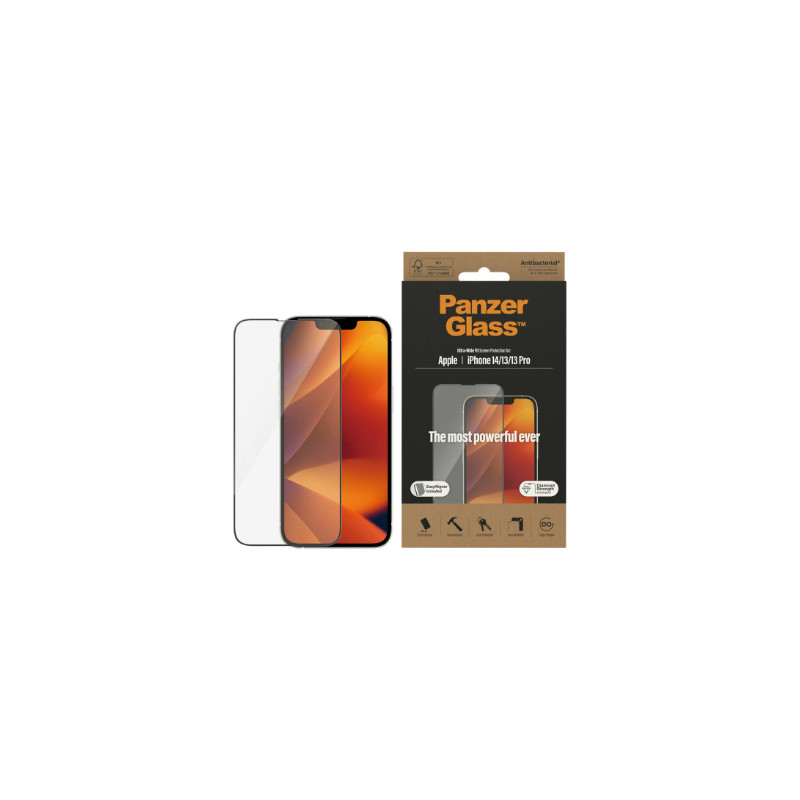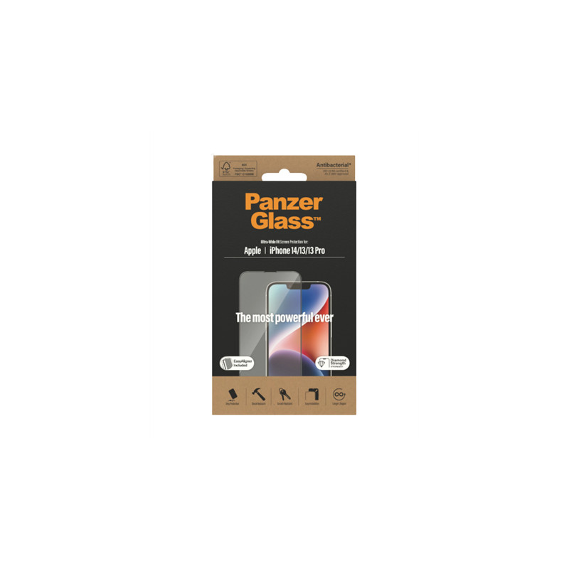 PanzerGlass | Screen protector | Apple | iPhone 14/13/13 Pro | Tempered Glass | Transparent | Fingerprint resistant; Diamond strength; Ultra-Wide Fit