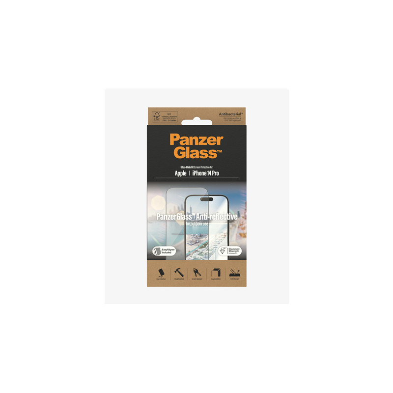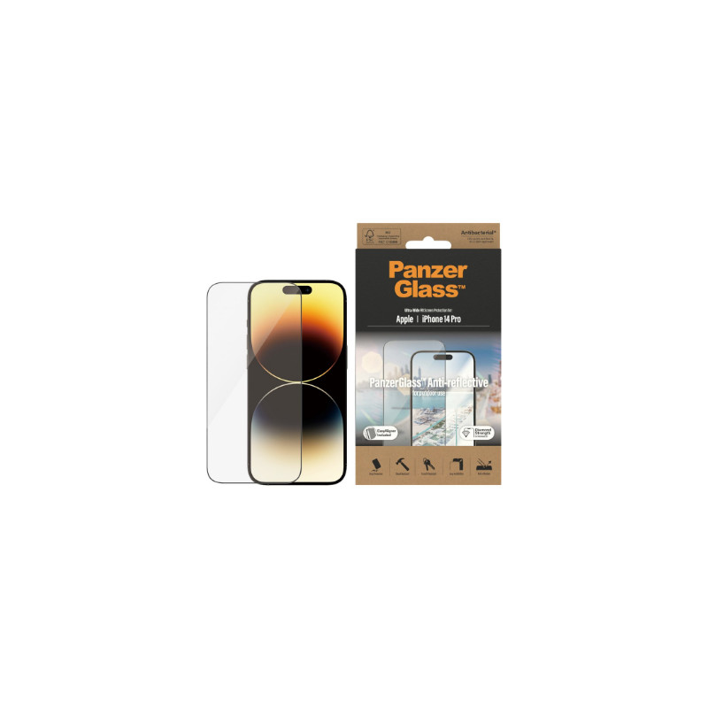 PanzerGlass | Screen protector | Apple | iPhone 14 Pro | Glass | Clear | Ultra-Wide Fit; Easy installation; Privacy Filter; Fingerprint resistant | Anti-Reflective