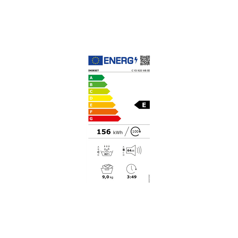 INDESIT Dryer Machine | C YD 92D WB EE | Energy efficiency class E | Front loading | 9 kg | Digital | Depth 60.7 cm | White