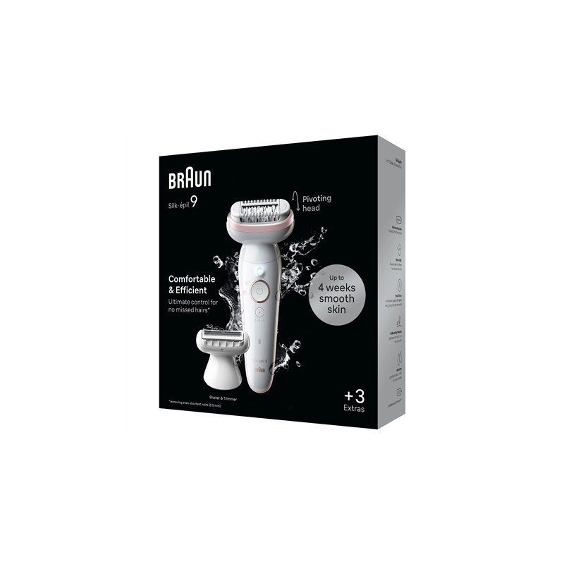 Braun Epilator | SES9-030 Silk épil 9 | Operating time (max) 50 min | Number of power levels 2 | Wet & Dry | White/Rose