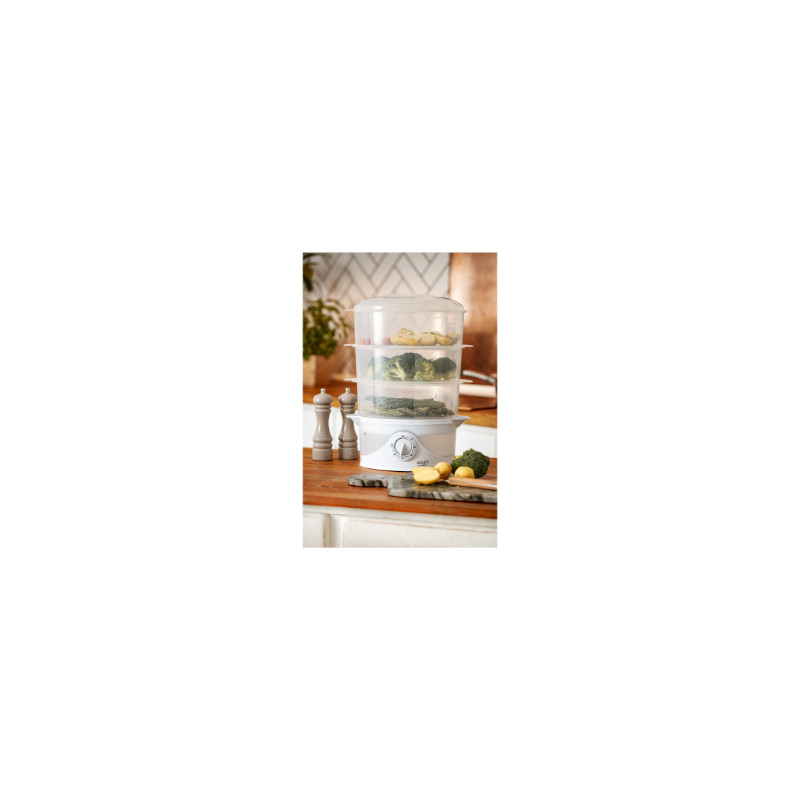 Designed for easy cooking different dishes simultaneously 3 transparent and folding trays 40 secs. start up Egg trays Designed tray for juice extracts TurboSteam attachment Bowl for rice cooking Semi-transparent water container with water level indicator |