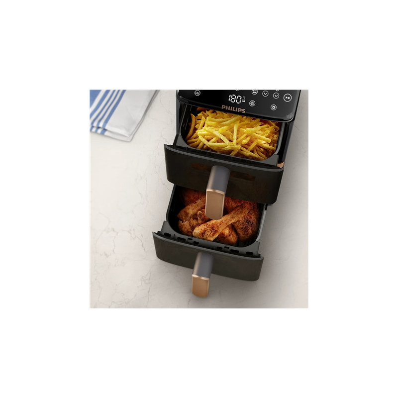 Philips Dual Basket Airfryer | NA462/70 4000 Series | Power 2750 W | Capacity 10 L | Rapid Air technology | Black