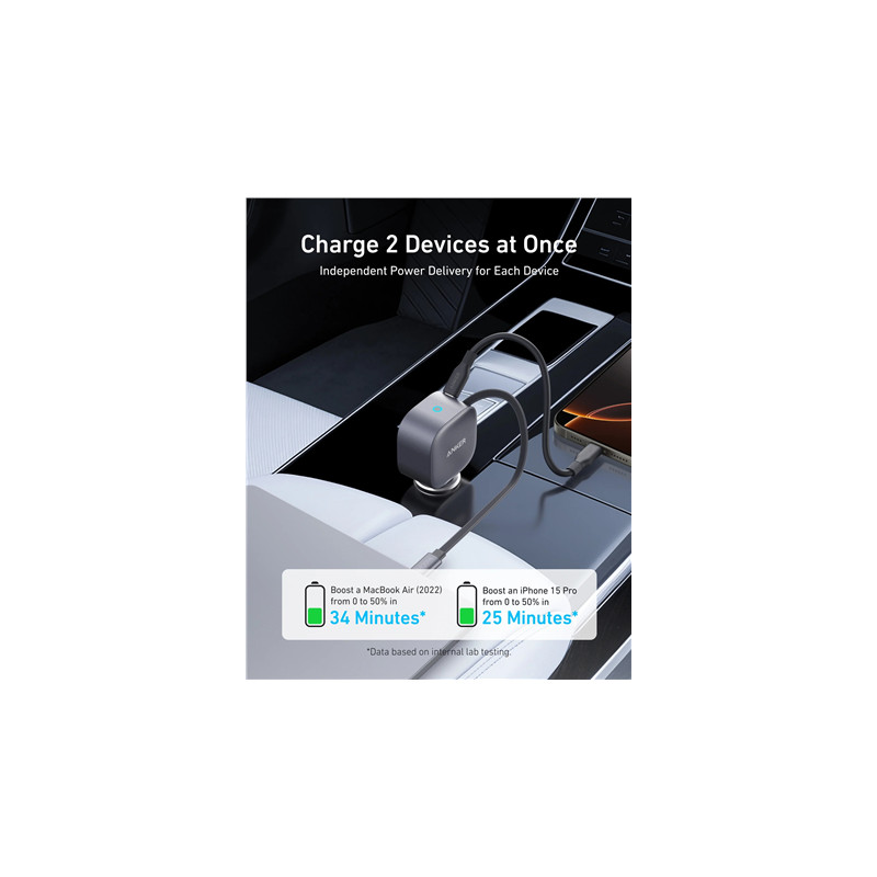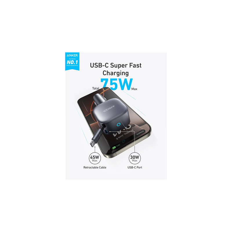 Anker Nano Car Charger (75W, USB-C Port, Built-In Retractable USB-C Cable)