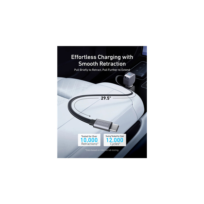 Nano Car Charger (75W, USB-C Port, Built-In Retractable USB-C Cable) |