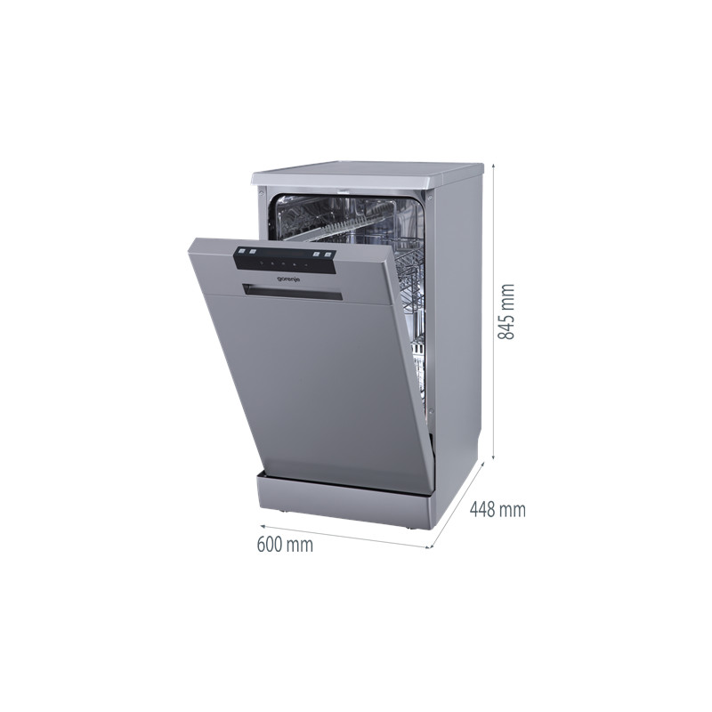 Gorenje Dishwasher | GS522E10S | Built under | Width 44.8 cm | Number of place settings 10 | Number of programs 6 | Energy efficiency class Class E | Grey