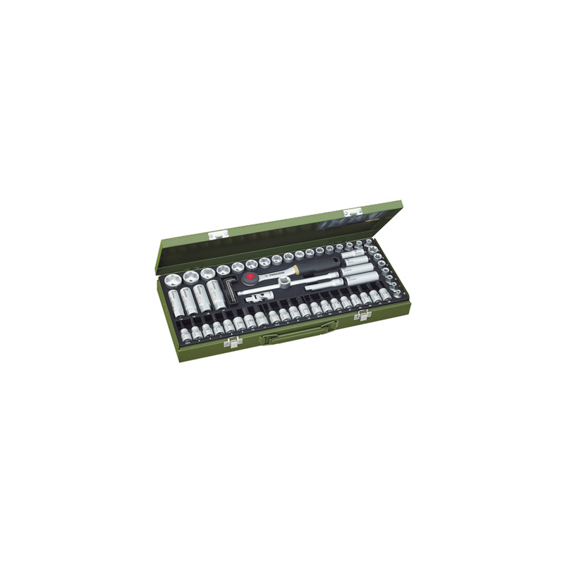 string(93) "Compact socket and ratchet set in a sturdy metal case The set includes heads in sizes 6-24 mm"