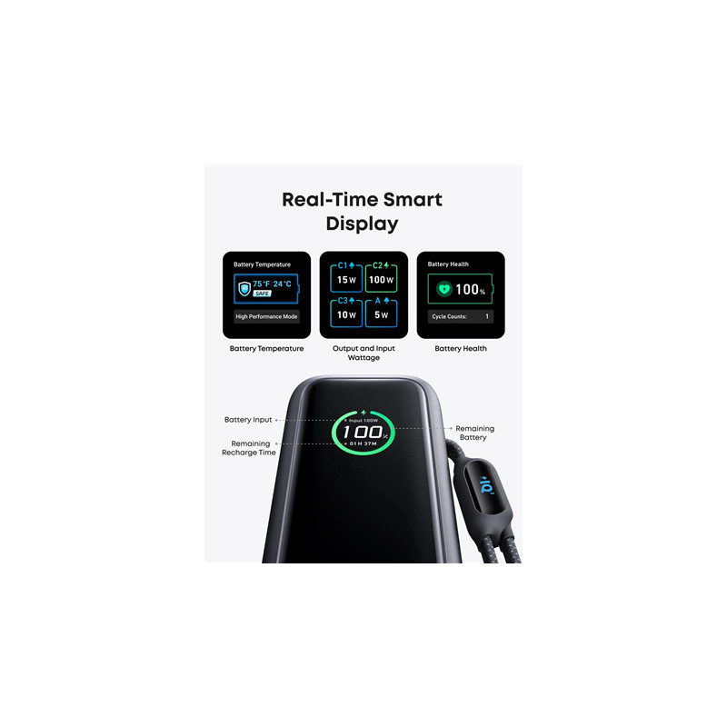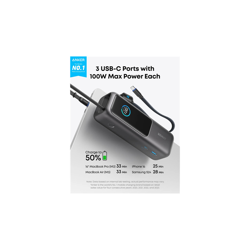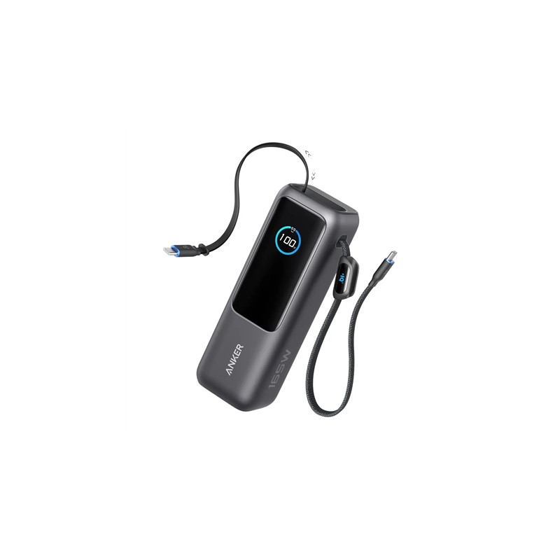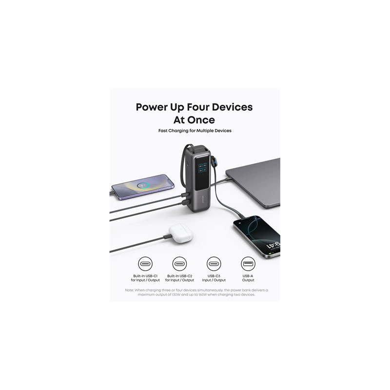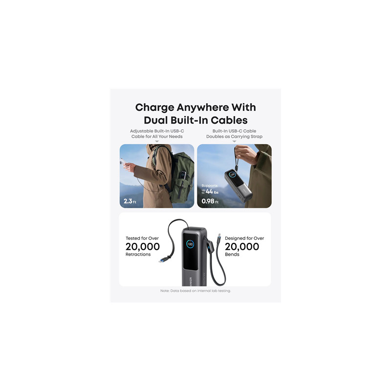 Anker Zolo Powerbank | A1695H11 | 25000 mAh | Built-In USB-C and Retractable Cable) | Grey