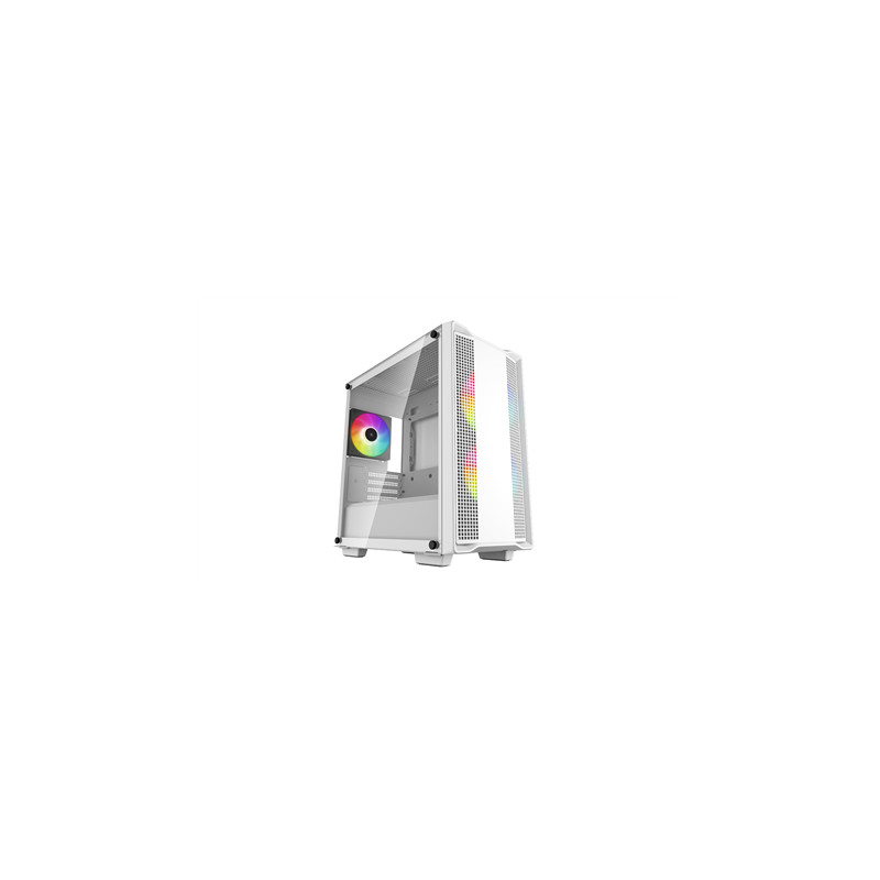 The DeepCool CC360 WH ARGB is an all-white Micro-ATX case that offers outstanding value with spacious component compatibility, a crystal-clear tempered glass window, and a total of three pre-installed ARGB fans that get any build started right |