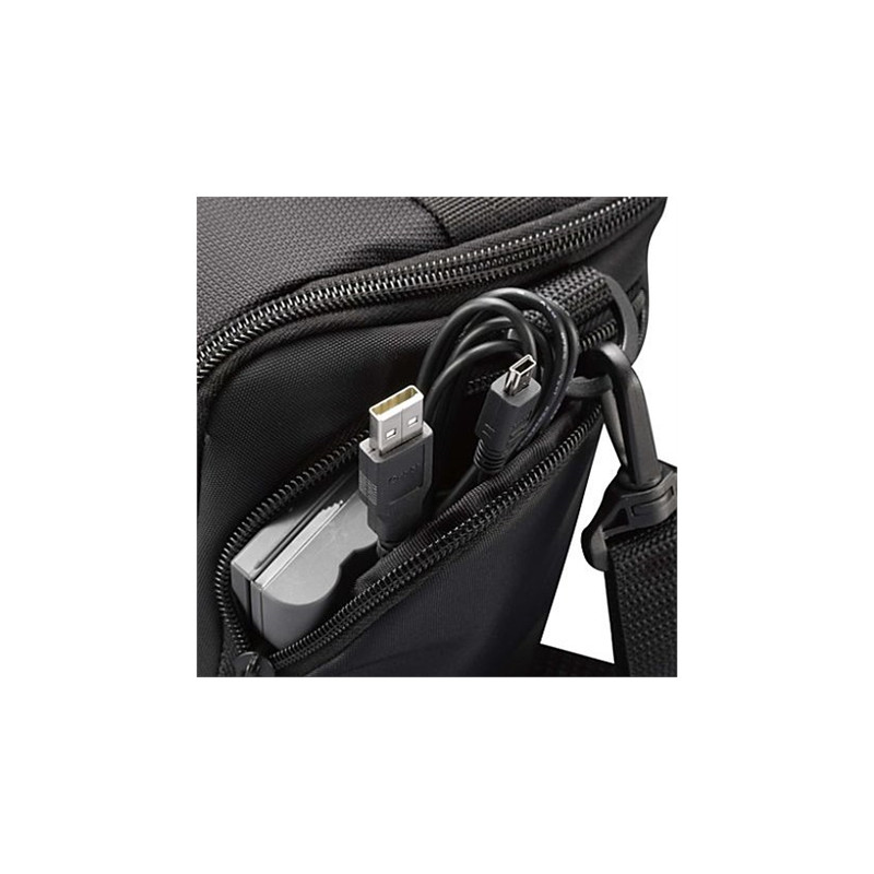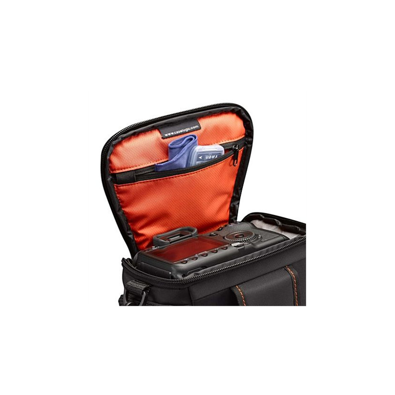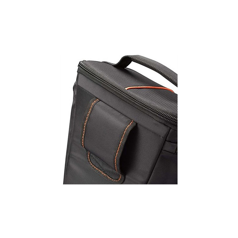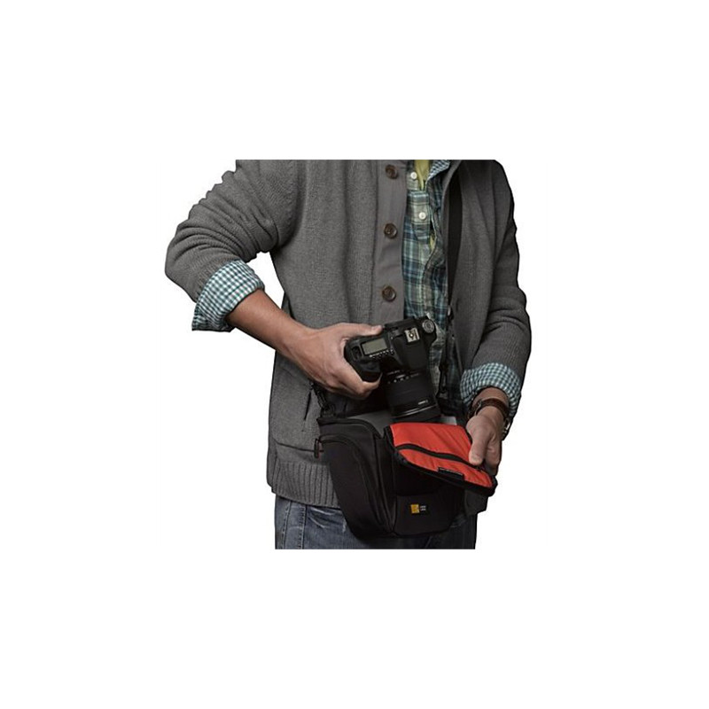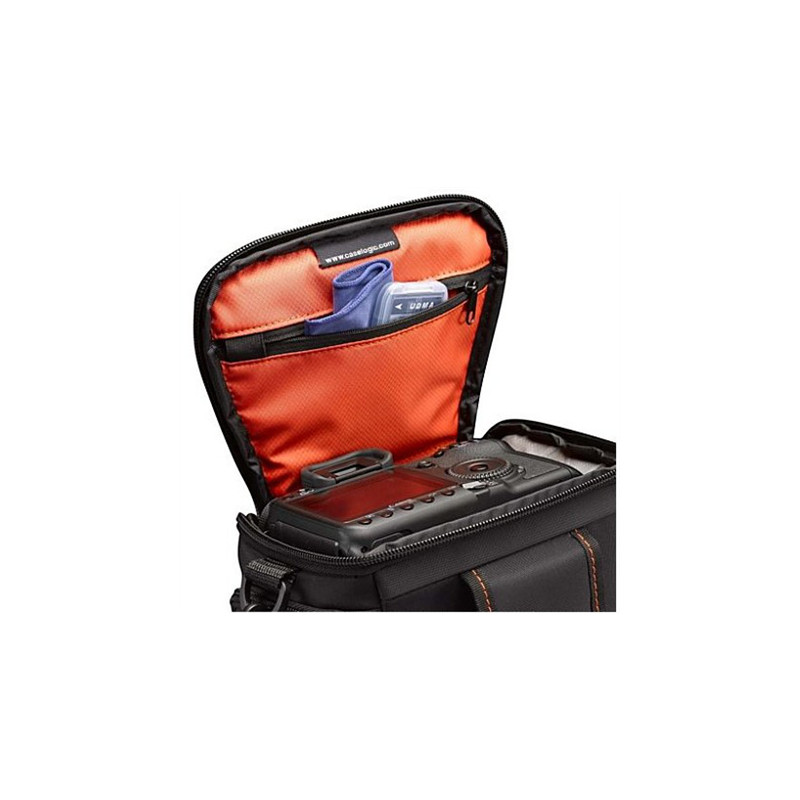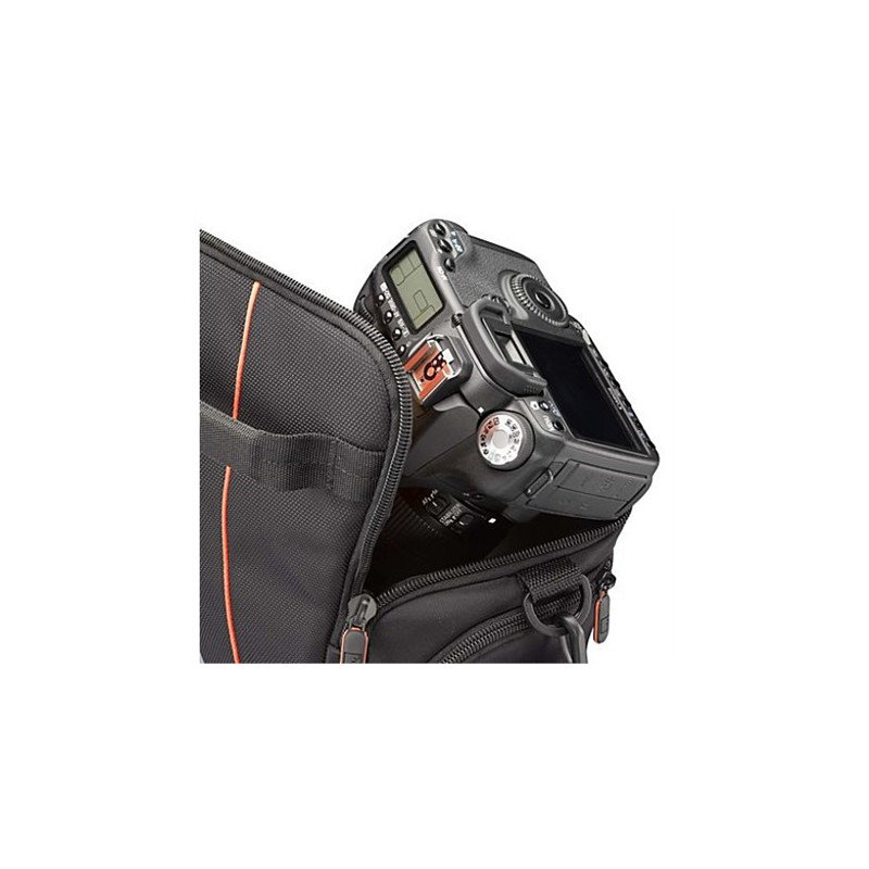 Kitos savybės | * Designed to fit an SLR camera with standard zoom lens attached * Internal zippered pocket stores memory cards, filter or lens cloth * Side zippered pockets store an extra battery, cables, lens cap, or small accessories * Lid unzips to create a wide open |