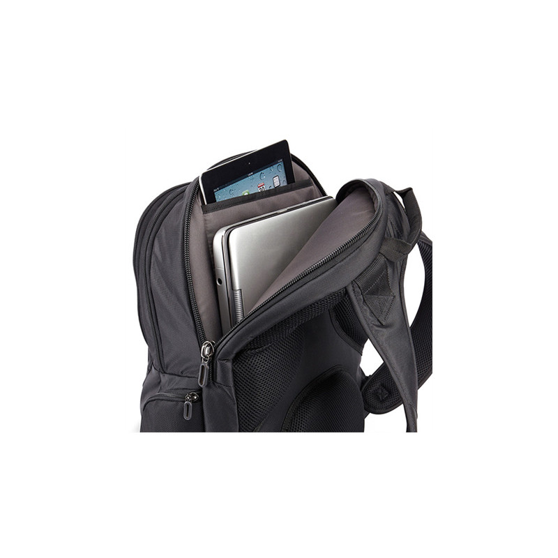 For the always in-transit professional, this backpack offers a sleek alternative to a briefcase. Ample storage space, full electronics capacity and unique accessory pockets are inconspicuous beneath the streamlined, tapered construction and subtle tone-on |