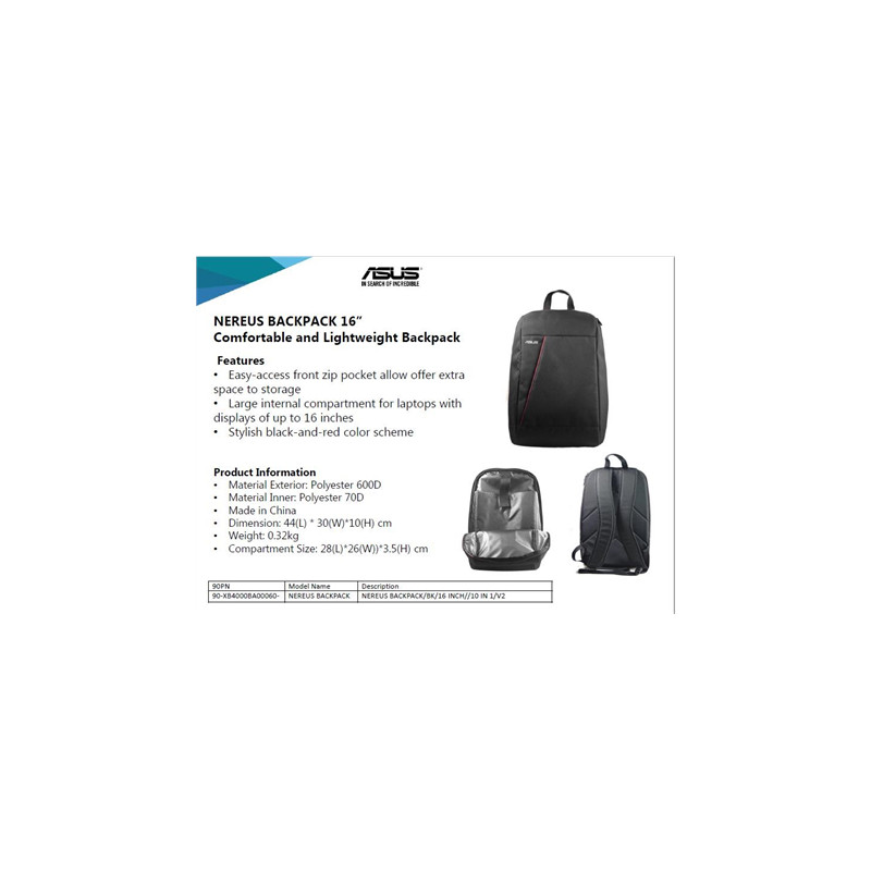 Asus | NEREUS | Fits up to size 16 " | Backpack | Black