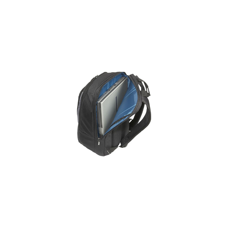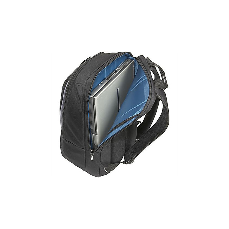 * Classic backpack with midnight blue color accents to add some personality * Separate padded computer compartment * Organizer panel with storage space for blackberry, iPod, USB key, business cards, AC adapter, cables etc.* Padded shoulder straps and rein |