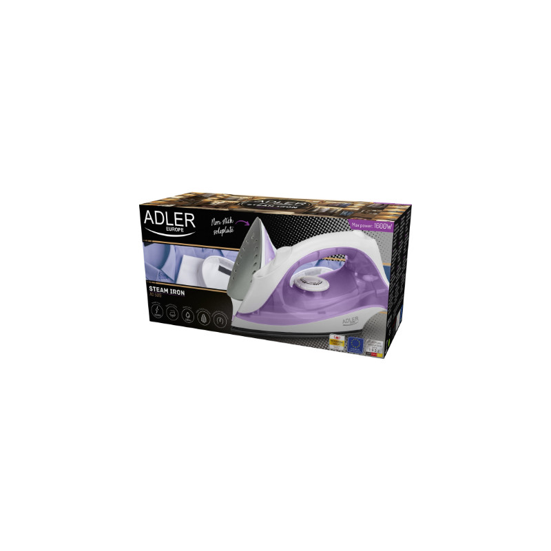 Iron | Adler | AD 5019 | With cord | 1600 W | Water tank capacity 100 ml | Continuous steam 10 g/min | Violet/White