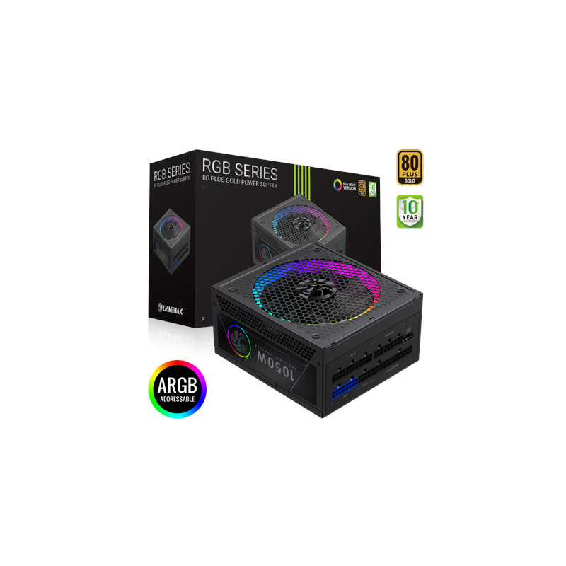 Gamemax Power Supply, 80 PLUS, Gold | RGB 1050G | 1050 W