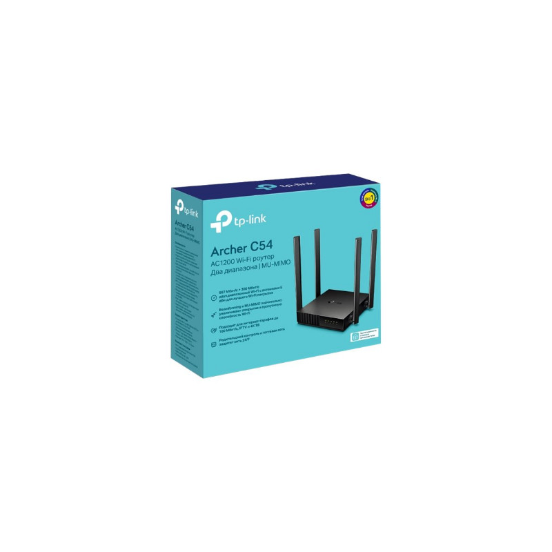 Dual Band Router | Archer C54 | 802.11ac | 300+867 Mbit/s | 10/100 Mbit/s | Ethernet LAN (RJ-45) ports 4 | Mesh Support No | MU-MiMO Yes | No mobile broadband | Antenna type 4xFixed