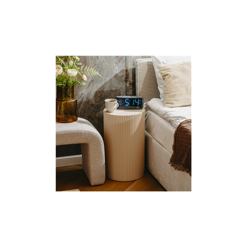 1.8-inch clock radio with red LED Digit height 48 mm 24-hour LED display Double alarm AM/FM digital radio 10 preset memory stations |