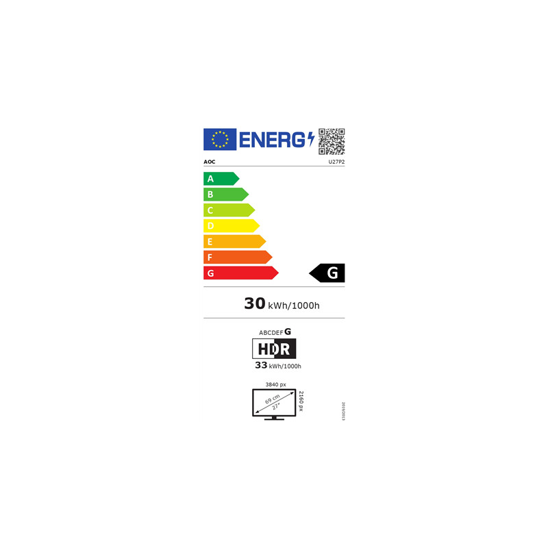AOC | Monitor | U27P2 | 27 " | IPS | UHD | 16:9 | 60 Hz | 4 ms | 3840 x 2160 | 350 cd/m² | Headphone out (3.5mm) | Black | Warranty 36 month(s)