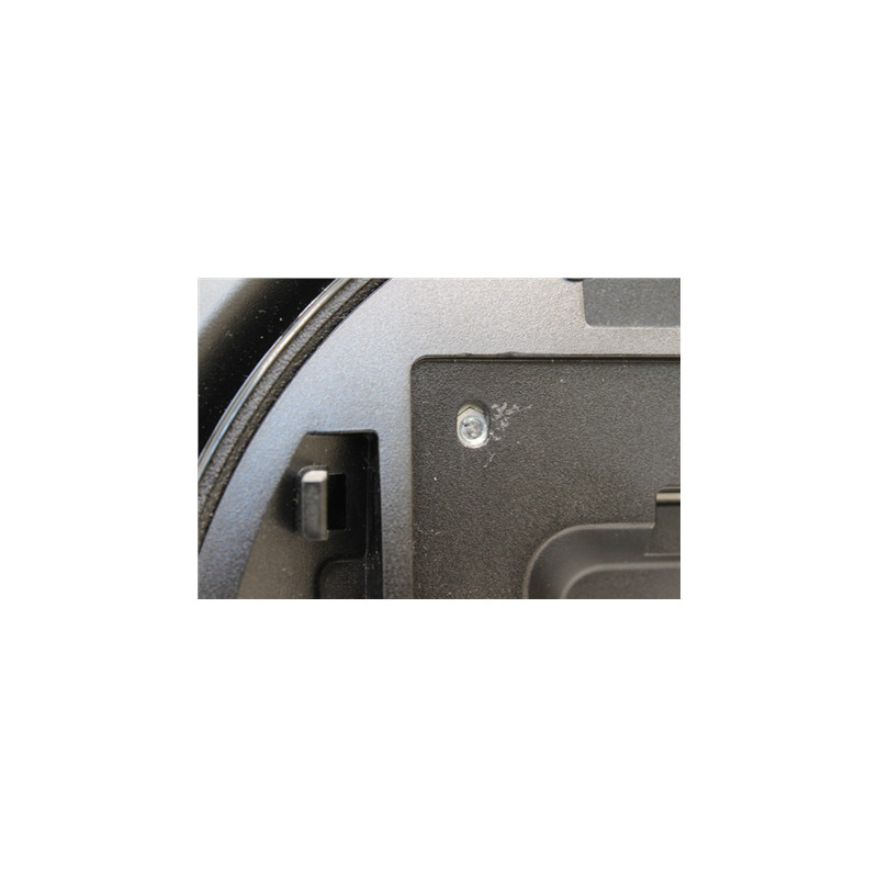 USED, DAMAGED PACKAGING FOAMS, PART ON BROKEN SCREW LEFT IN VESA MOUNTING HOLE |