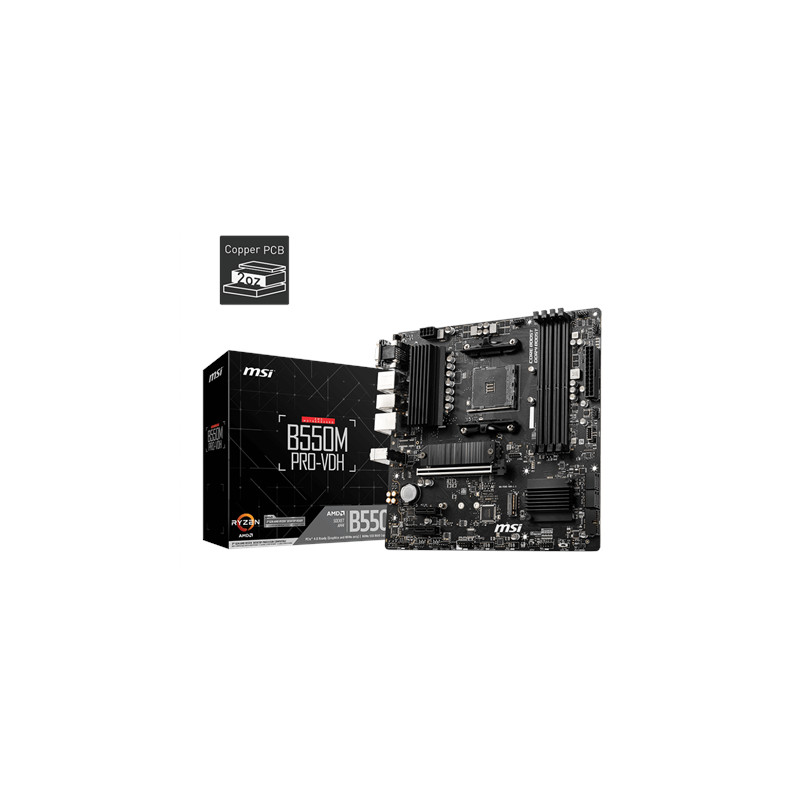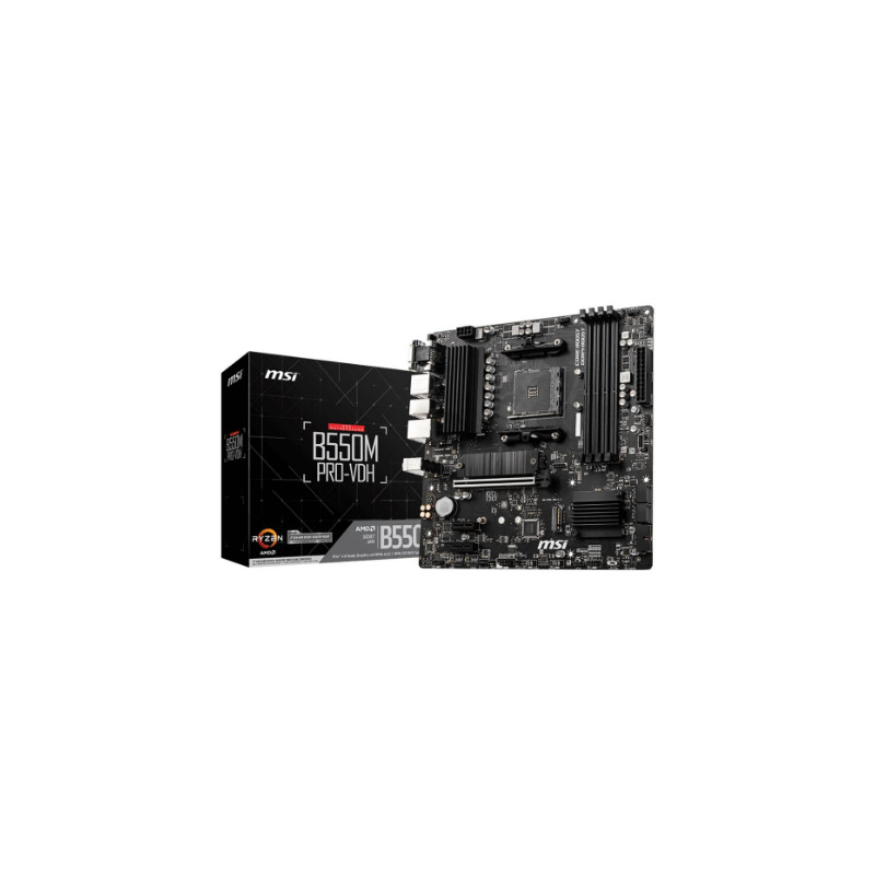 MSI | B550M PRO-VDH | Processor family AMD | Processor socket AM4 | DDR4 | Memory slots 4 | Number of SATA connectors 4 | Chipset AMD B | Micro ATX
