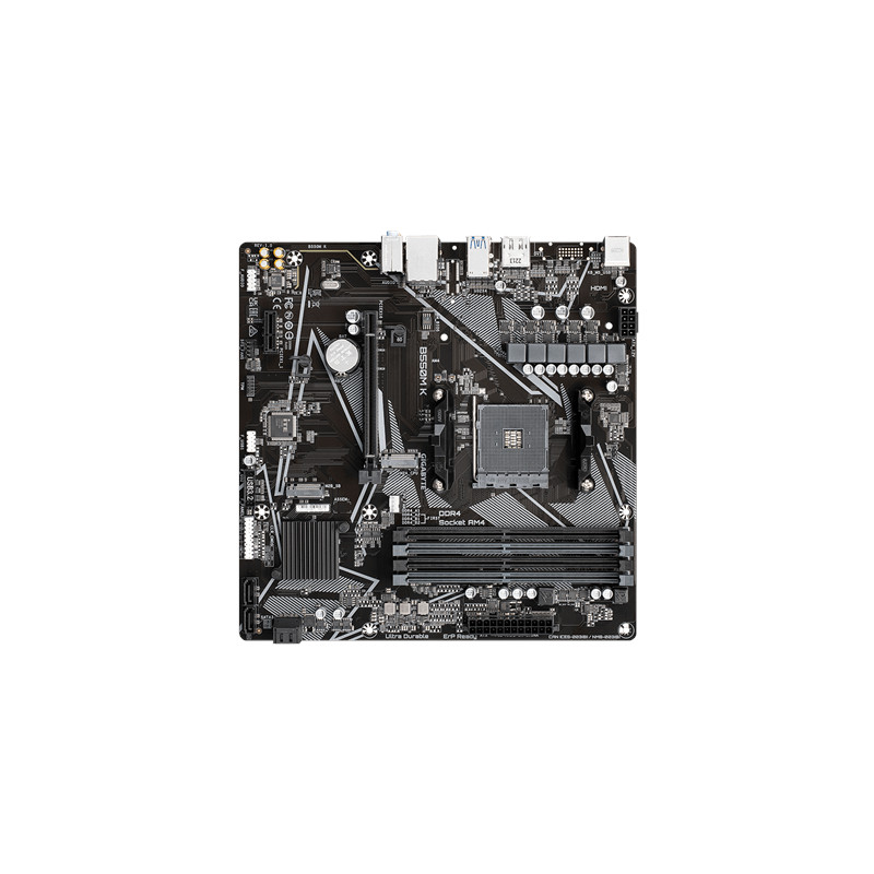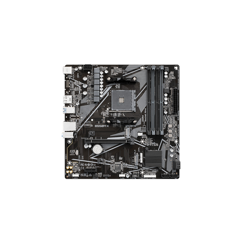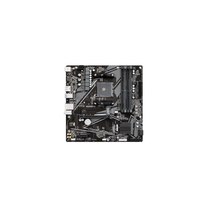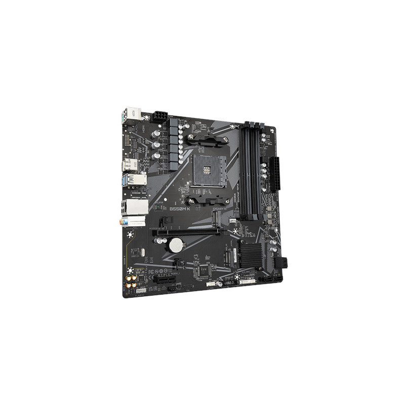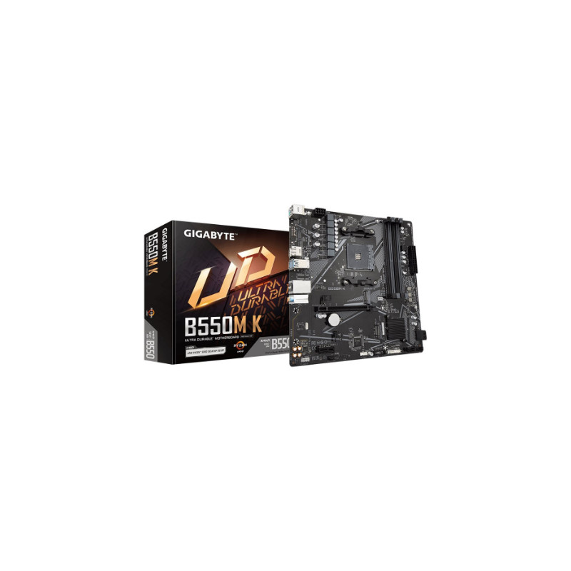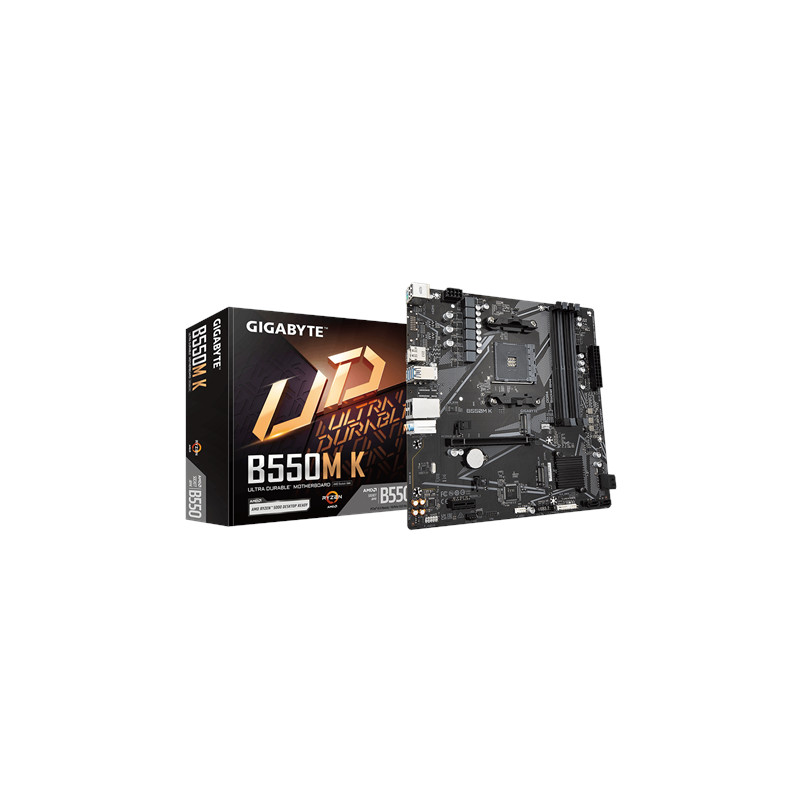 Gigabyte | B550M K 1.0 M/B | Processor family AMD | Processor socket AM4 | DDR4 DIMM | Memory slots 4 | Supported hard disk drive interfaces SATA, M.2 | Number of SATA connectors 4 | Chipset AMD B550 | Micro ATX