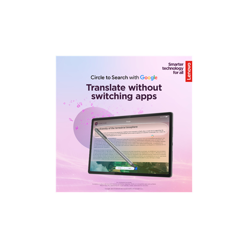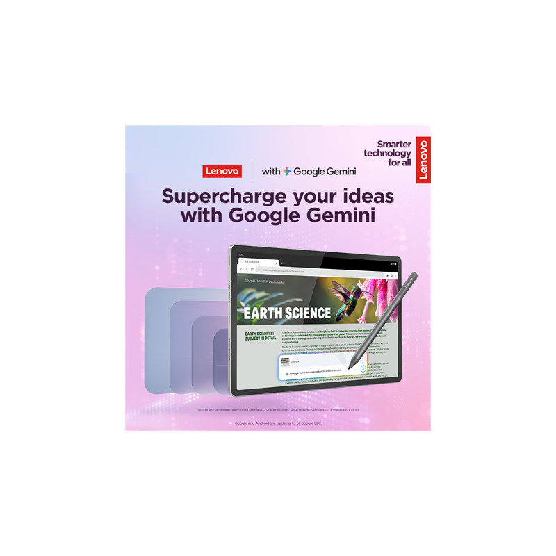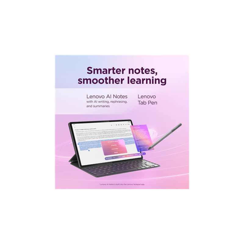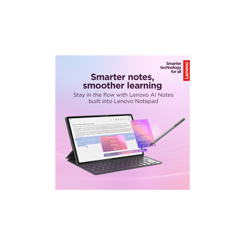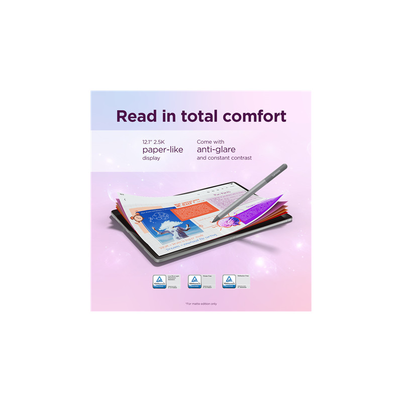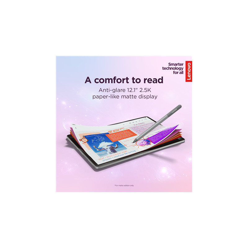 Lenovo Idea Tab Plus Wi-Fi (without power adapter) | ZAG70004SE | 12.1 " | Luna Grey | IPS | 2560 x 1600 pixels | MediaTek | Dimensity 6400 | 12 GB | Soldered LPDDR4x | 256 GB | Wi-Fi | Front camera | 8 MP | Rear camera | 13 MP | Bluetooth | 5.2 | Android | 15 or Later | Warranty 24 month(s) | Lenovo Tab Pen