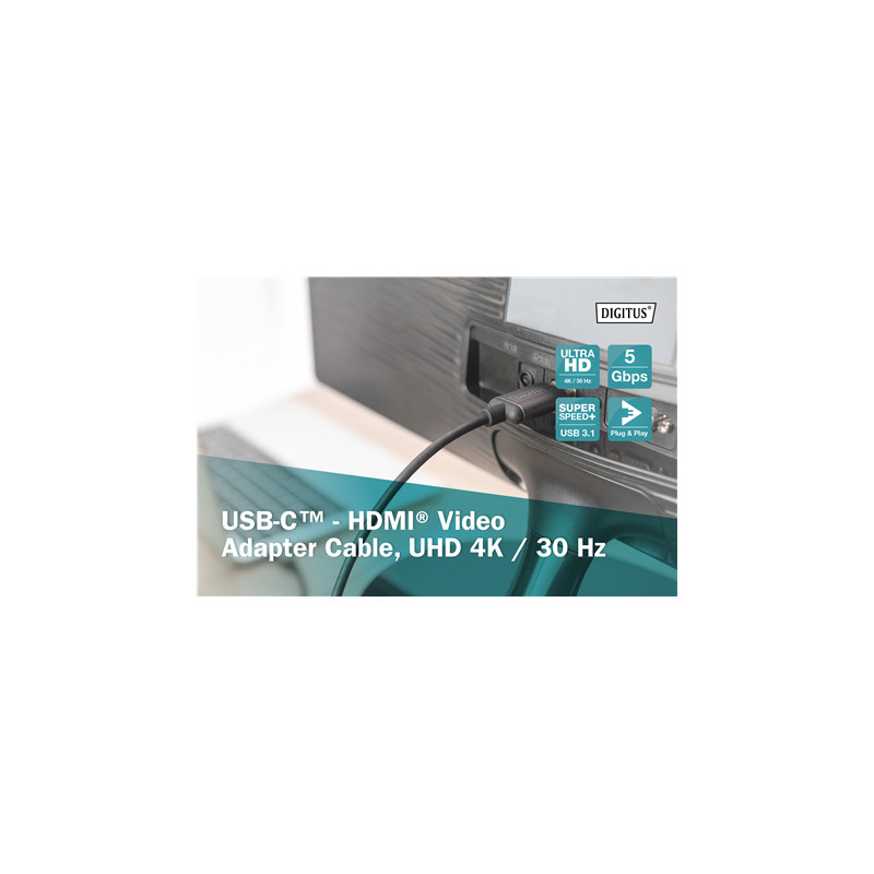 Digitus | USB Type-C to HDMI Adapter | DA-70821 | Black | USB Type-C | 1.8 m
