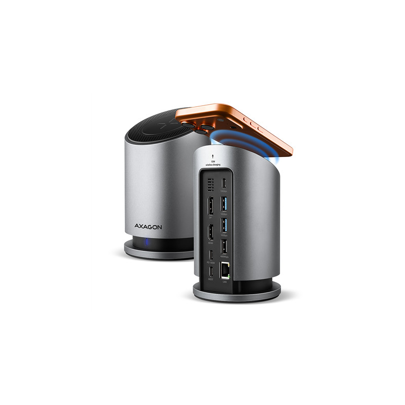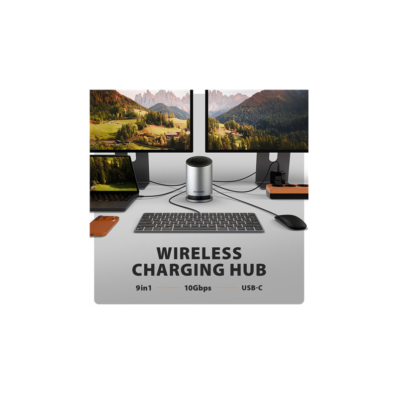 AXAGON USB-C 10Gbps Wireless Charging 9in1 hub | HMC-WL9