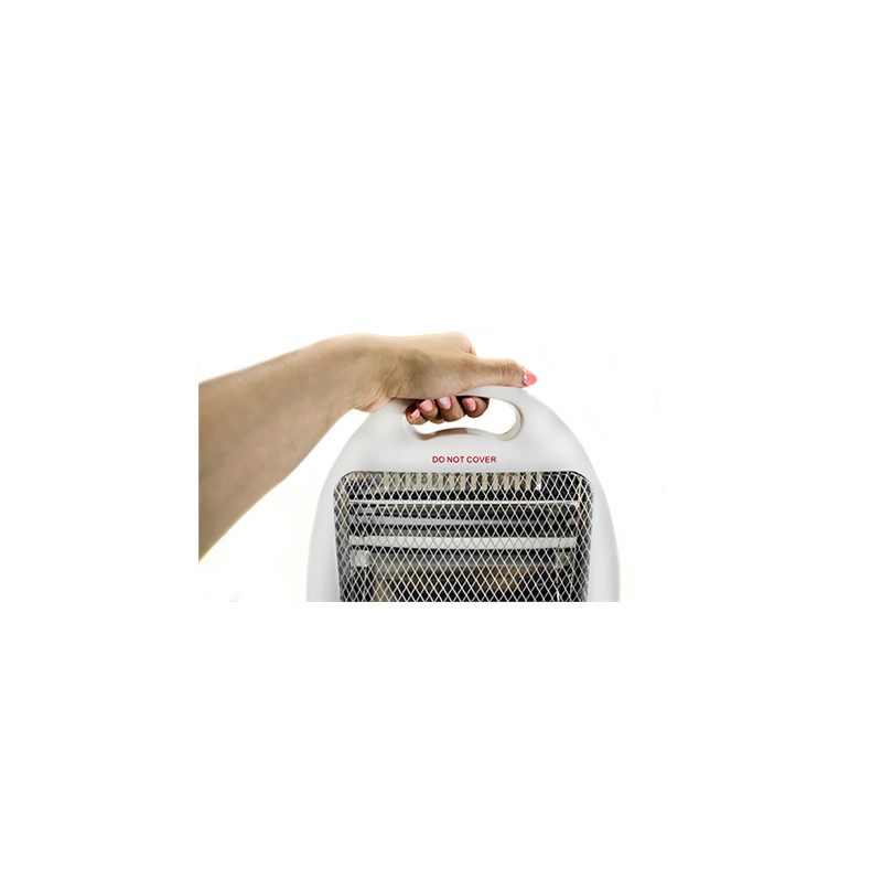 Two quartz halogen lamps. Knockdown protection. Automatic shut off when fallen over. |