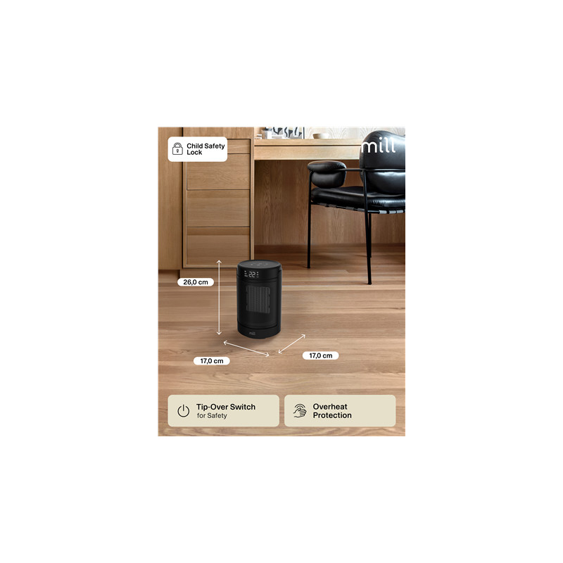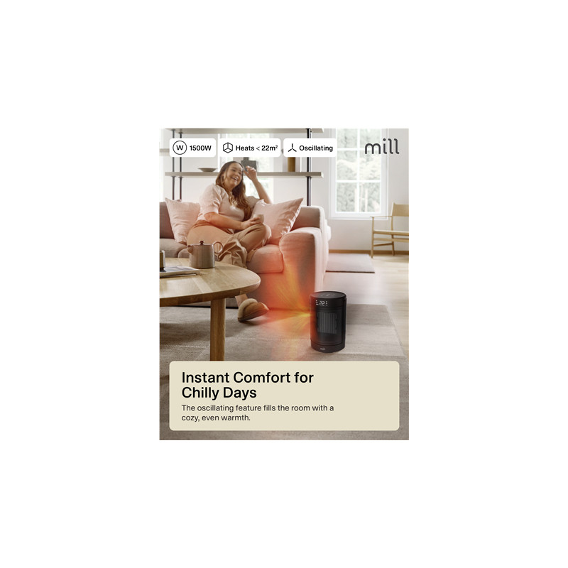 Mill FH1500BLACK | Ceramic fan heater | 1500 W | Suitable for rooms up to 22 m² | Black