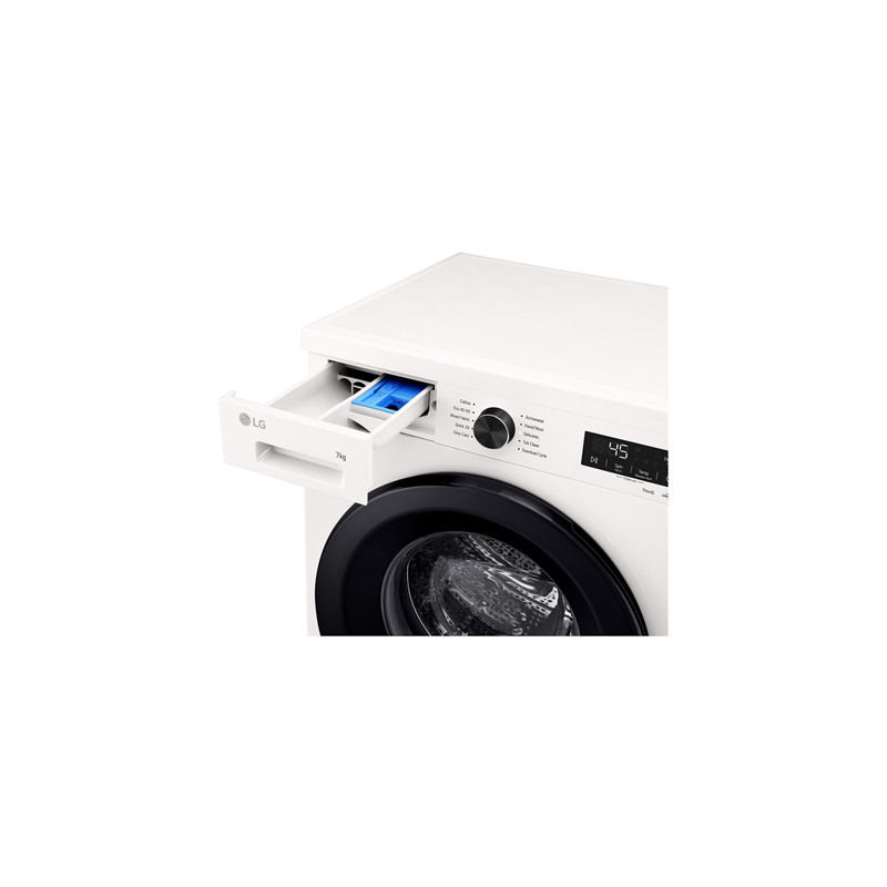 LG F2X10S7NWK | Washing Machine | Energy efficiency class A | Front loading | Washing capacity 7 kg | 1200 RPM | Depth 44 cm | Width 60 cm | Display | LED | Steam function | Essence White (Glossy) | Wi-Fi