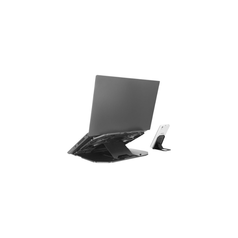 Ergonomic design with 10 levels of adjustment from 0 to 54 degrees Additional cellphone stand for multitasking Durable, lightweight construction with non-slip rubber surface pads for steady typing Supported Laptop Weight - 5 kg |