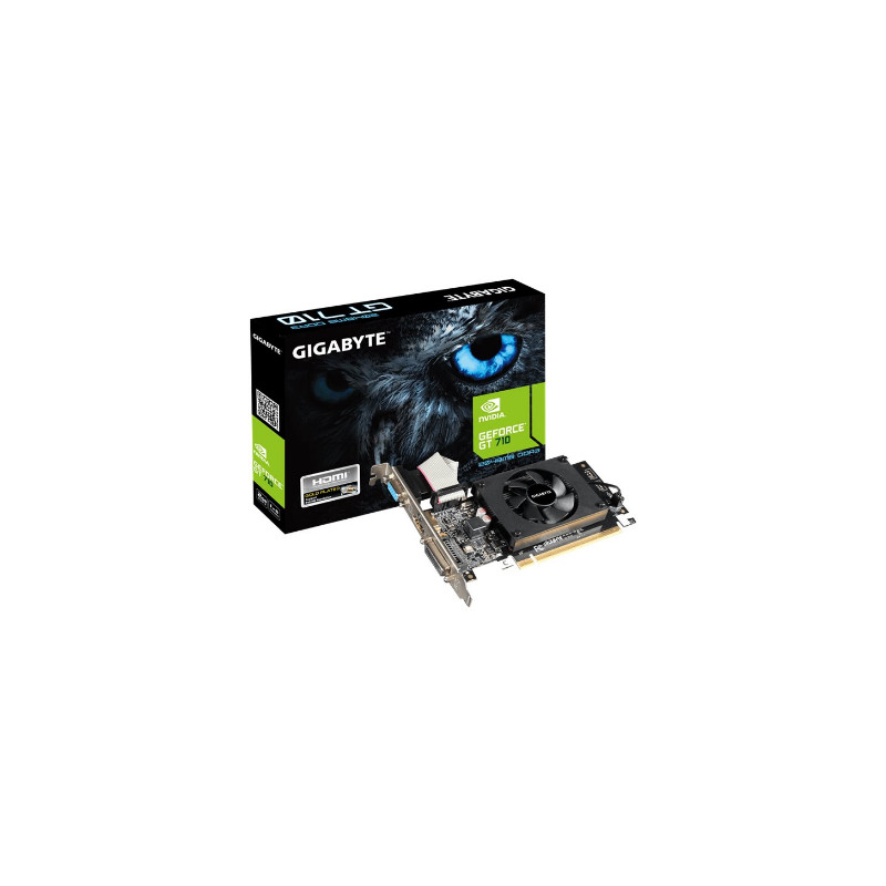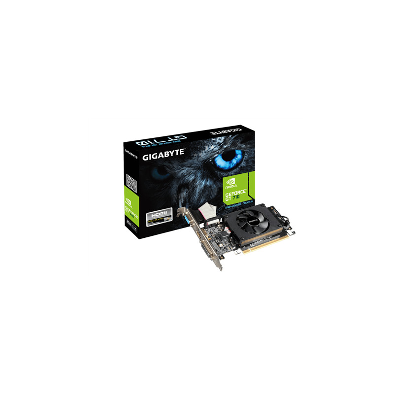 Gigabyte | GV-N710D3-2GL 2.0 | NVIDIA | 2 GB | GeForce GT 710 | DDR3 | Cooling type Active | DVI-D ports quantity 1 | HDMI ports quantity 1 | PCI Express 2.0 | Memory clock speed 1600 MHz | Processor frequency 954 MHz | VGA (D-Sub) ports quantity 1