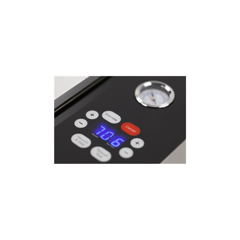 Strong professional vacuum pump - 72 liters / minute. Manual pressure display. Transparent glas cover. Digital process display of the vacuum and welding function. Adjustable vacuum and welding time. |