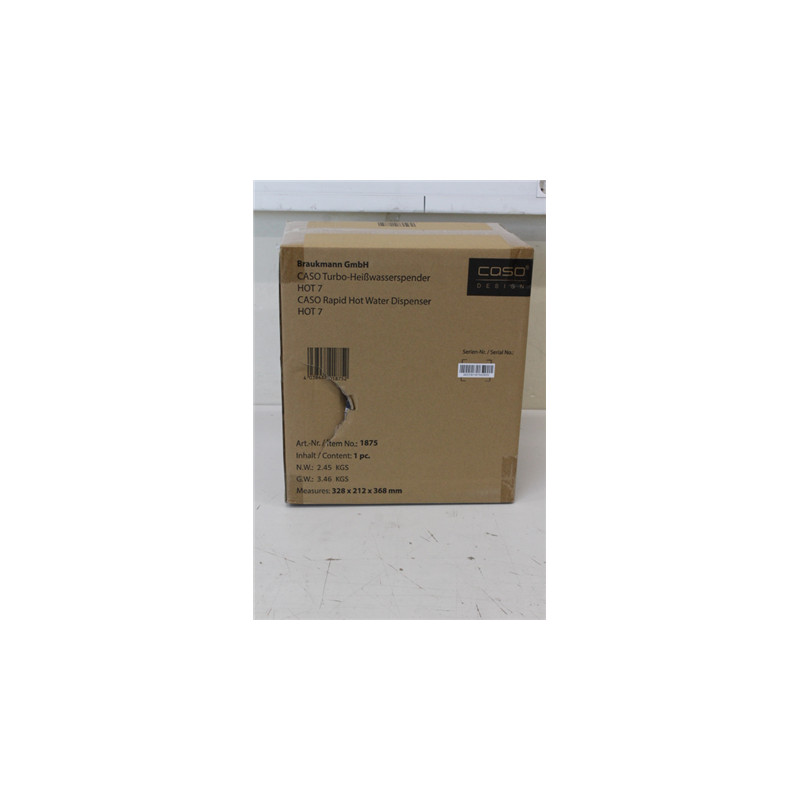 SALE OUT. Caso 01875 HOT 7 Turbo Hot water dispenser, Capacity 2.7 L, Black/Stainless Steel | Caso Turbo Hot Water Dispenser | Hot 7 | Water Dispenser | 2200-2600 W | 2.7 L | Plastic/Stainless Steel | Black/Stainless Steel | DAMAGED PACKAGING