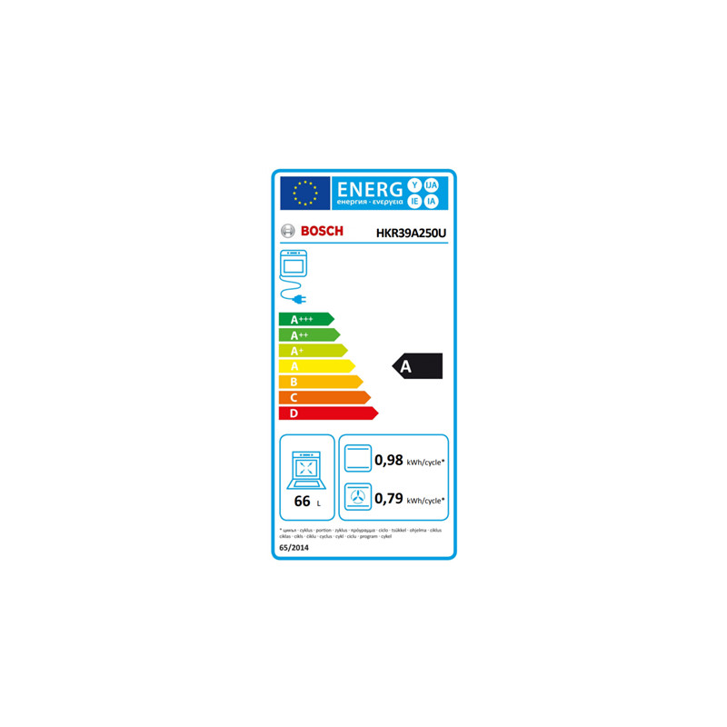 Bosch | Cooker | HKR39A250U | Hob type Vitroceramic | Oven type Electric | Stainless steel | Width 60 cm | Electronic ignition | Grilling | LED | Depth 60 cm | 66 L