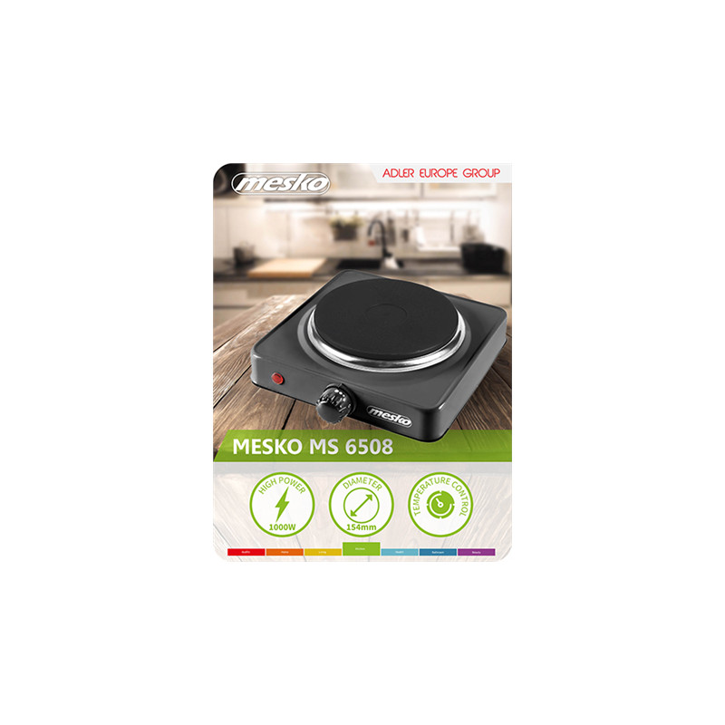 Mesko | Hob | MS 6508 | Number of burners/cooking zones 1 | Rotary | Black | Electric